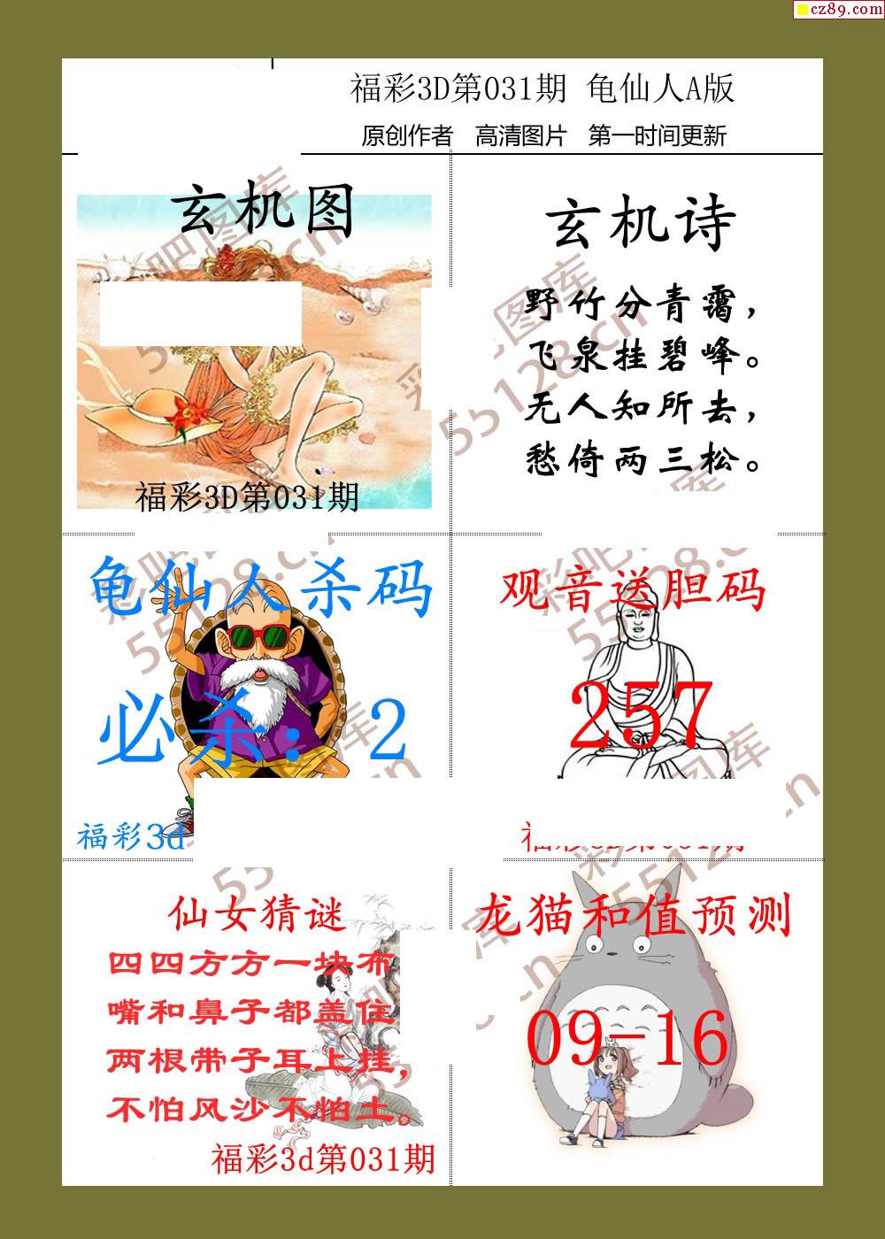 龟仙人26年031期福彩3d图谜